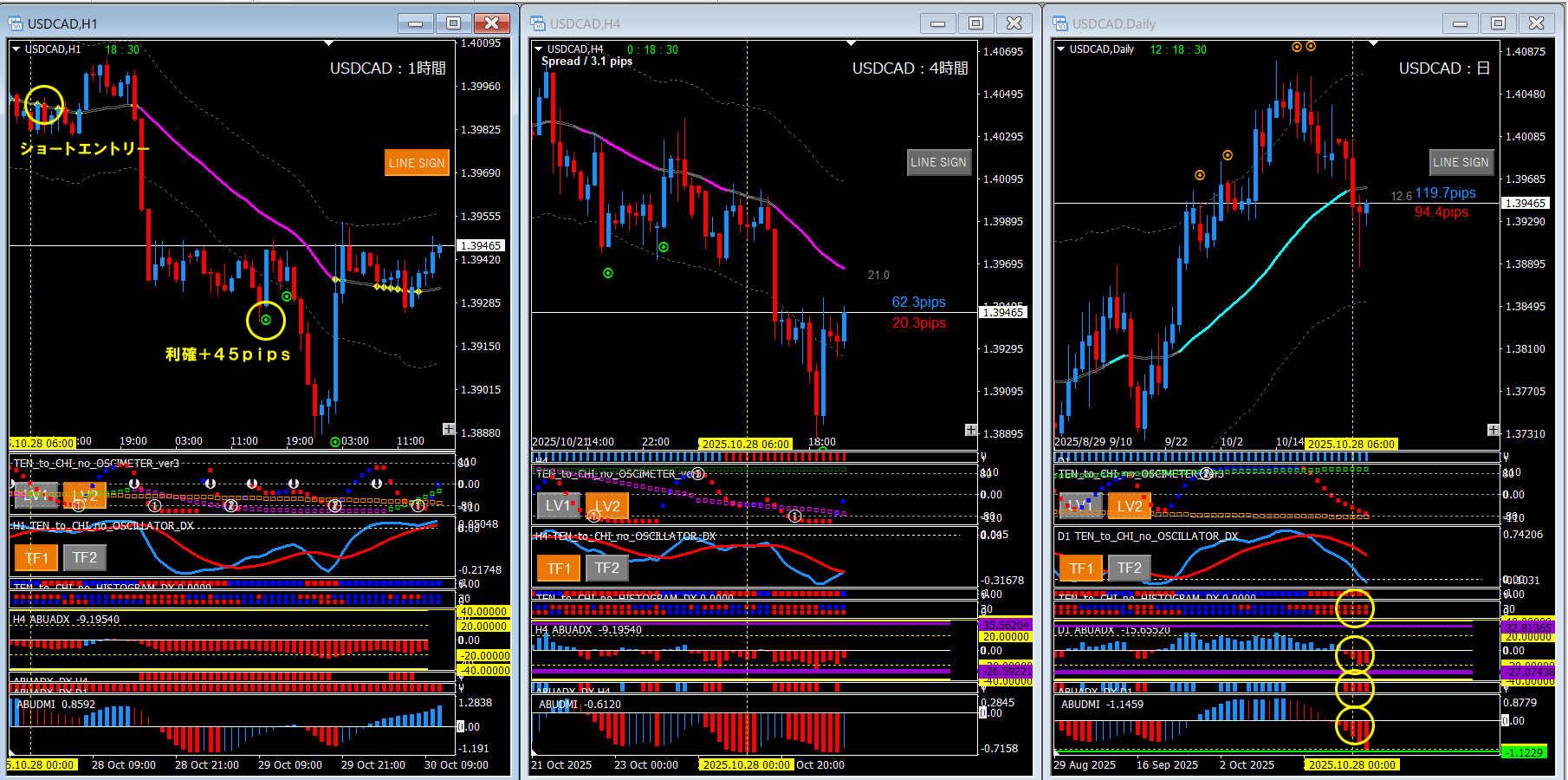 ドルカナ(USDCAD)/ 1時間足+4時間足+日足 過去検証