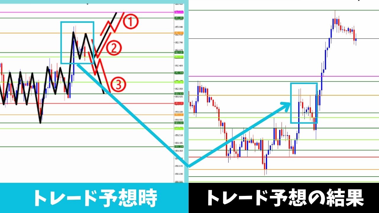 波動マスターFXの『超絶シンプル手法』の電子書籍内に勝率80%を超える相場予想のやり方も公開しておりますので、ご購入者の方もマネするだけで、下記と同じ相場予想が立てられるようになります。