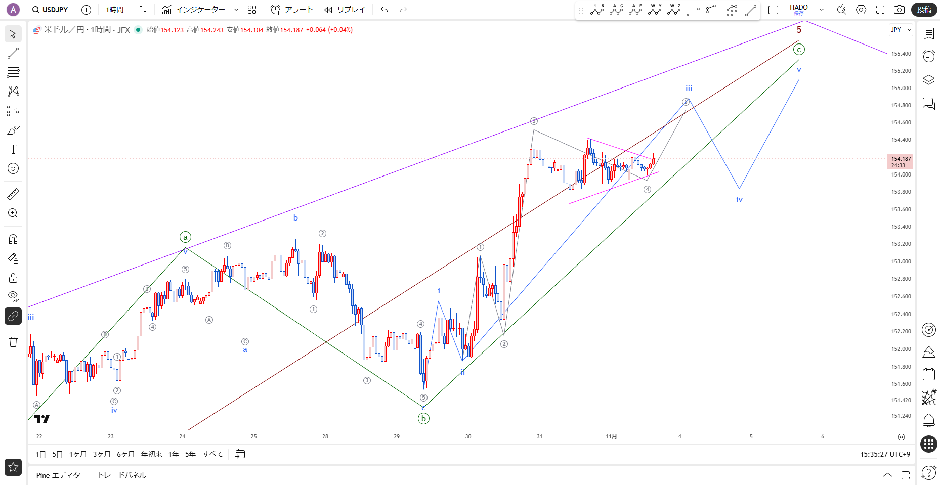 【ドル円】横ばいのあとは上昇が待っている / 11月3日(月)エリオット波動分析