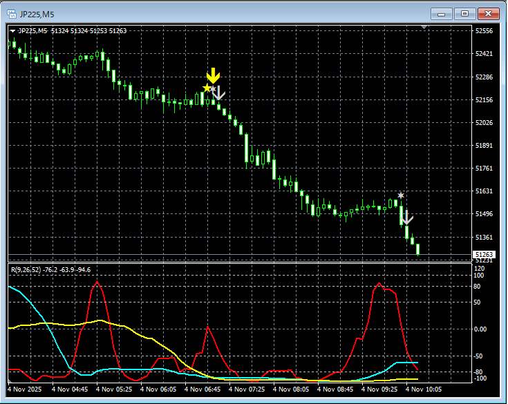 百戦錬磨 mBDSR(RCI2本フィルター)のサインとR1R2S2のサインの両方を活用する(66) 日経平均 JP225 5分足
