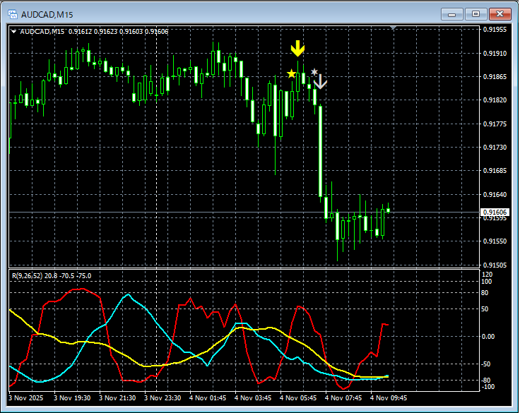 百戦錬磨 mBDSR(RCI2本フィルター)のサインとR1R2S2のサインの両方を活用する(67) AUDCAD 15分足