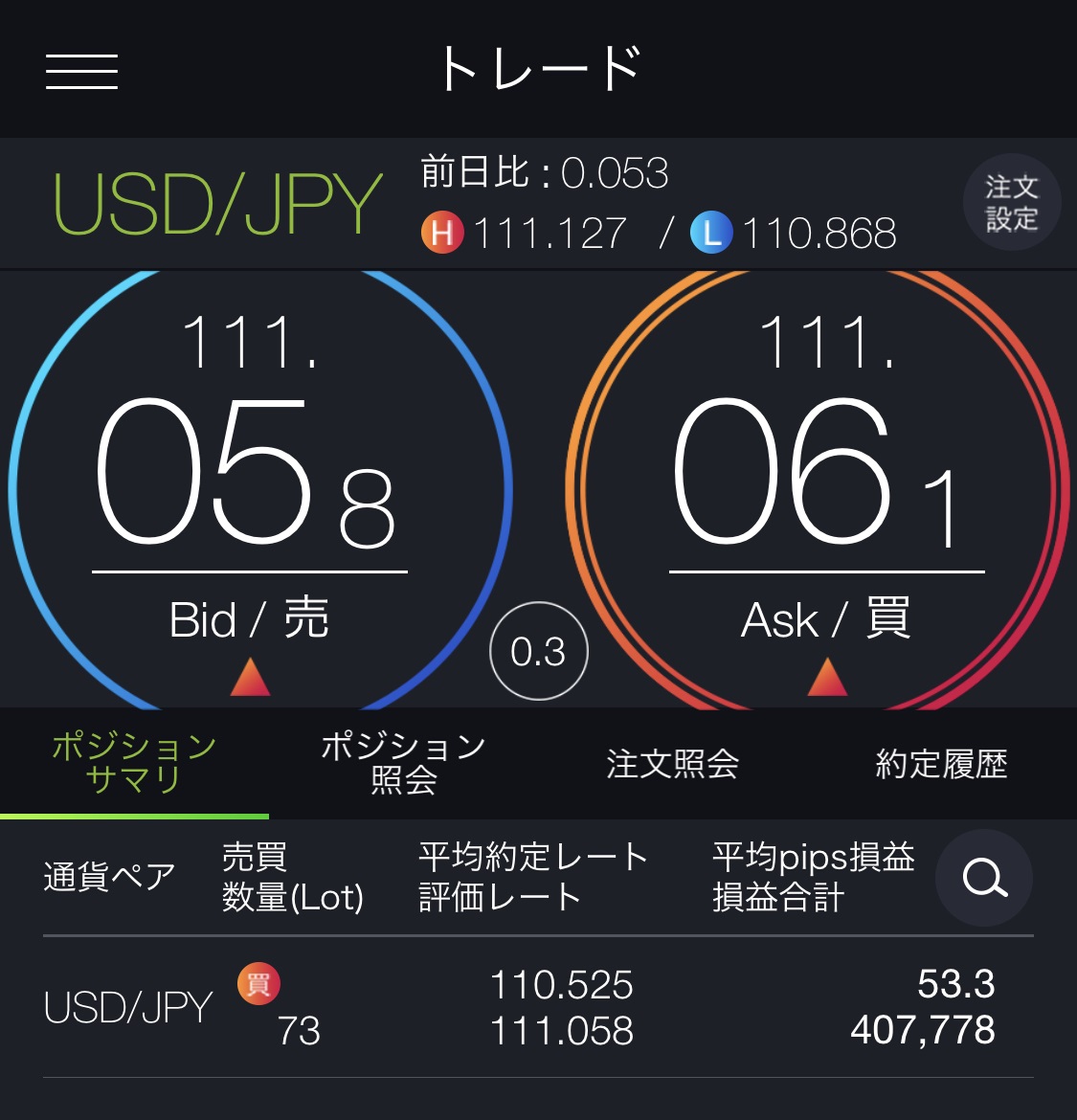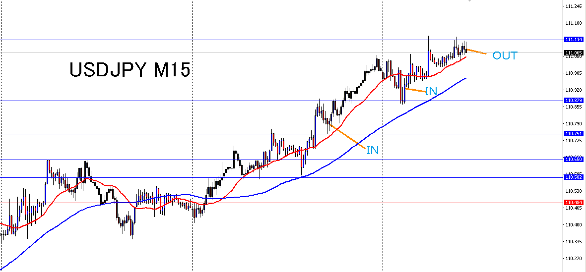 先ほど、ドル円利食いしました。上がっているから押しを拾っていけばいいだけ。