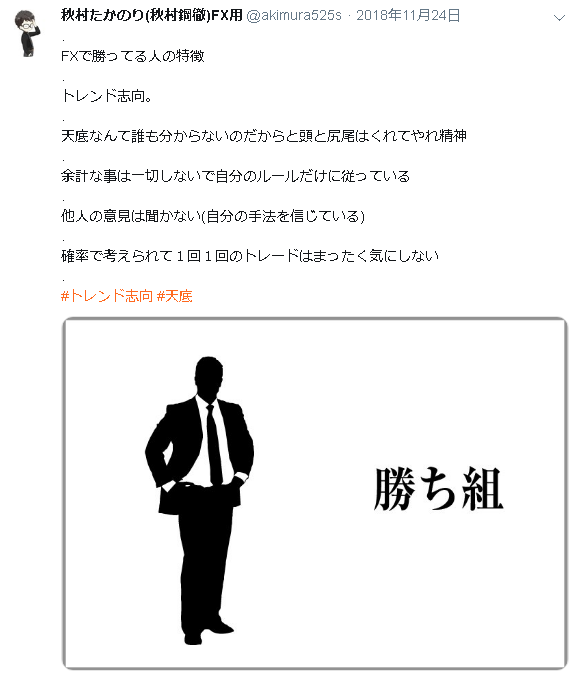 トレンドに合わせてエントリーして勝てるようになると、トレンドに逆らって負けている人を見ると、不思議に見えてくると思います。