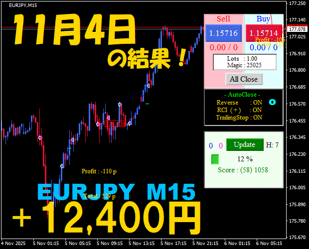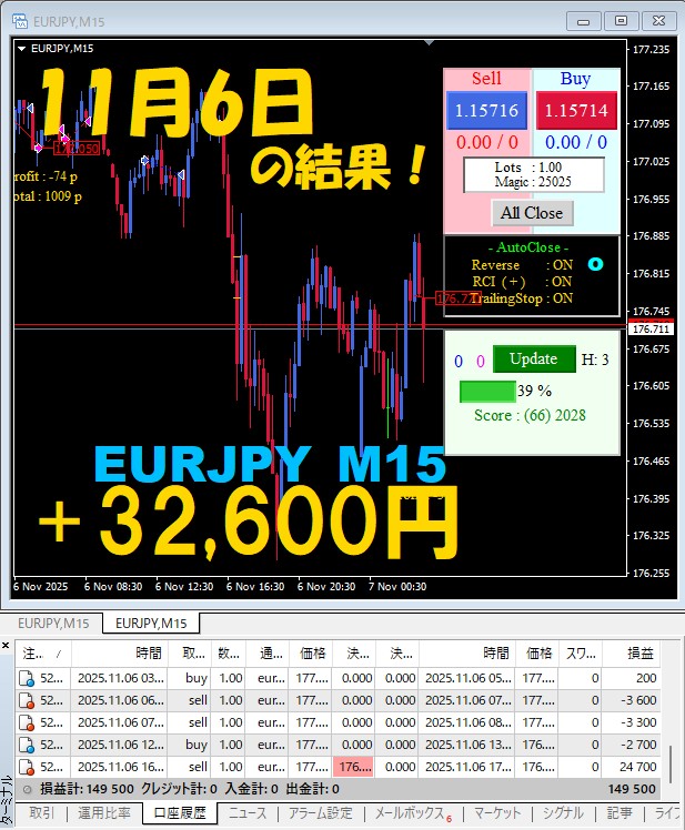 【EURJPY M15】前日の結果『ATS-25』 11月6日