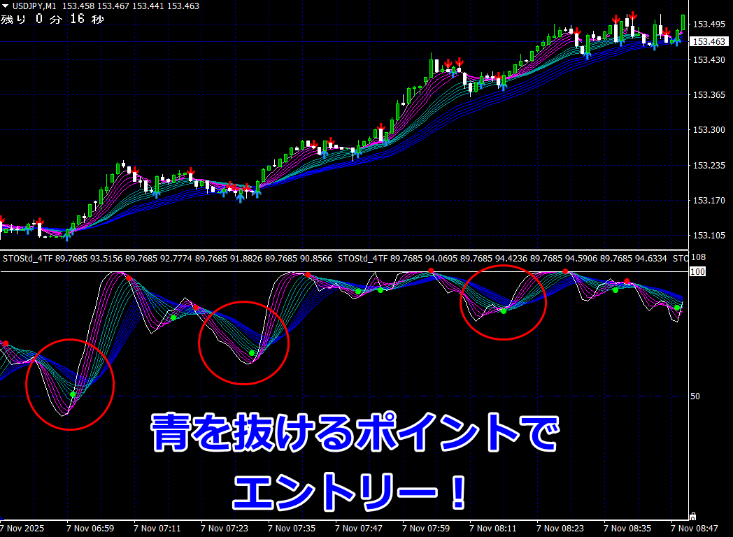 従いまして、上昇にしろ、下落にしろ、エントリーのねらい目は