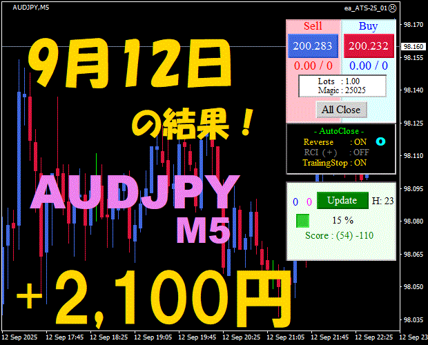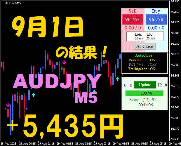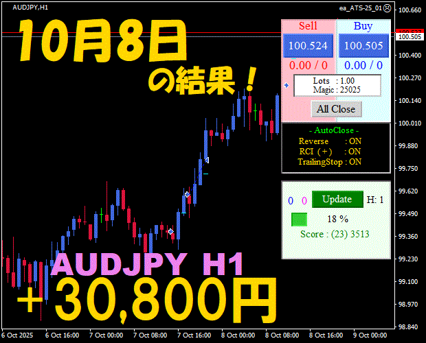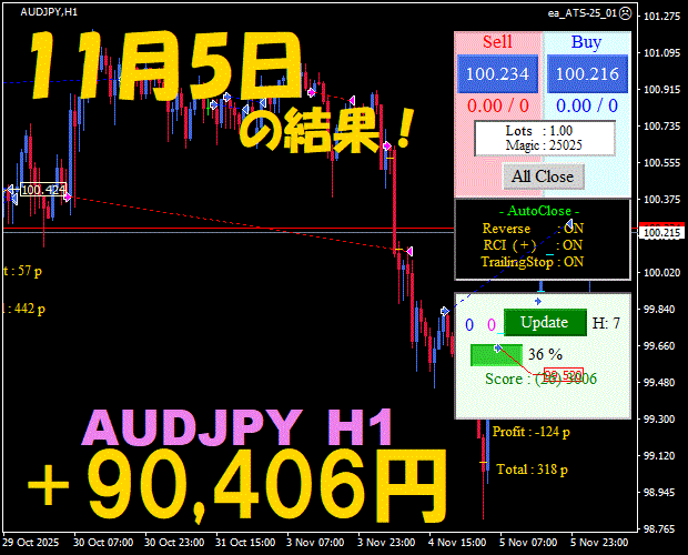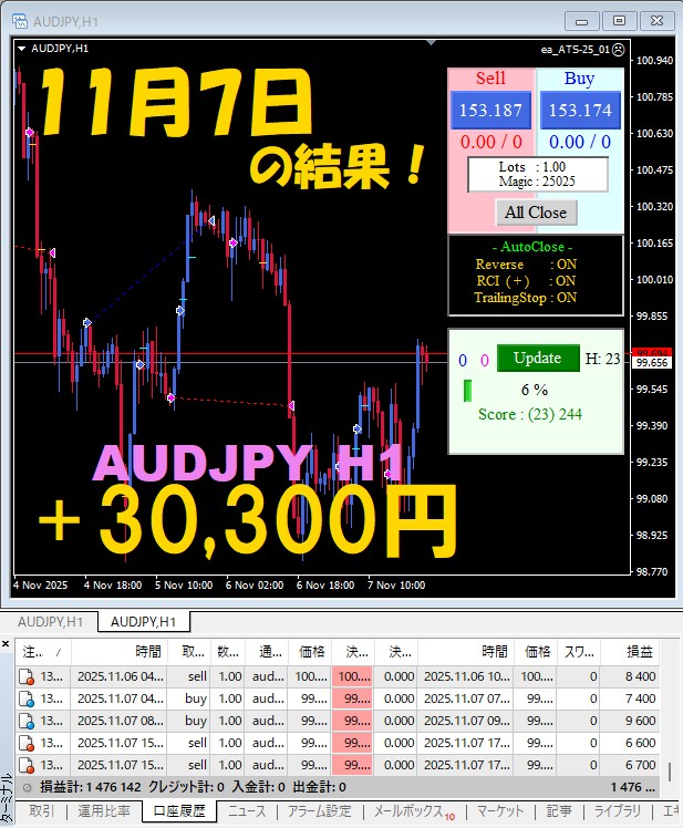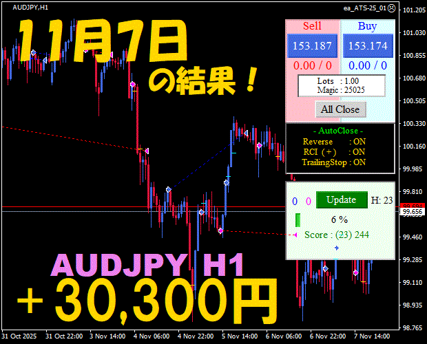 【前日の結果】AUDJPY H1 / M5 『ATS-25』11月7日