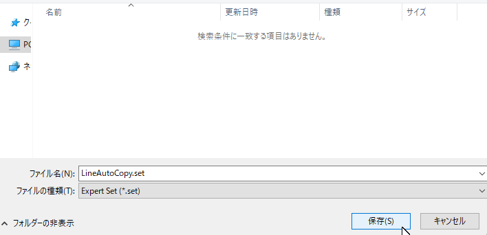 MQL4→Presetsフォルダを開くと、保存した.setファイルを確認できます。