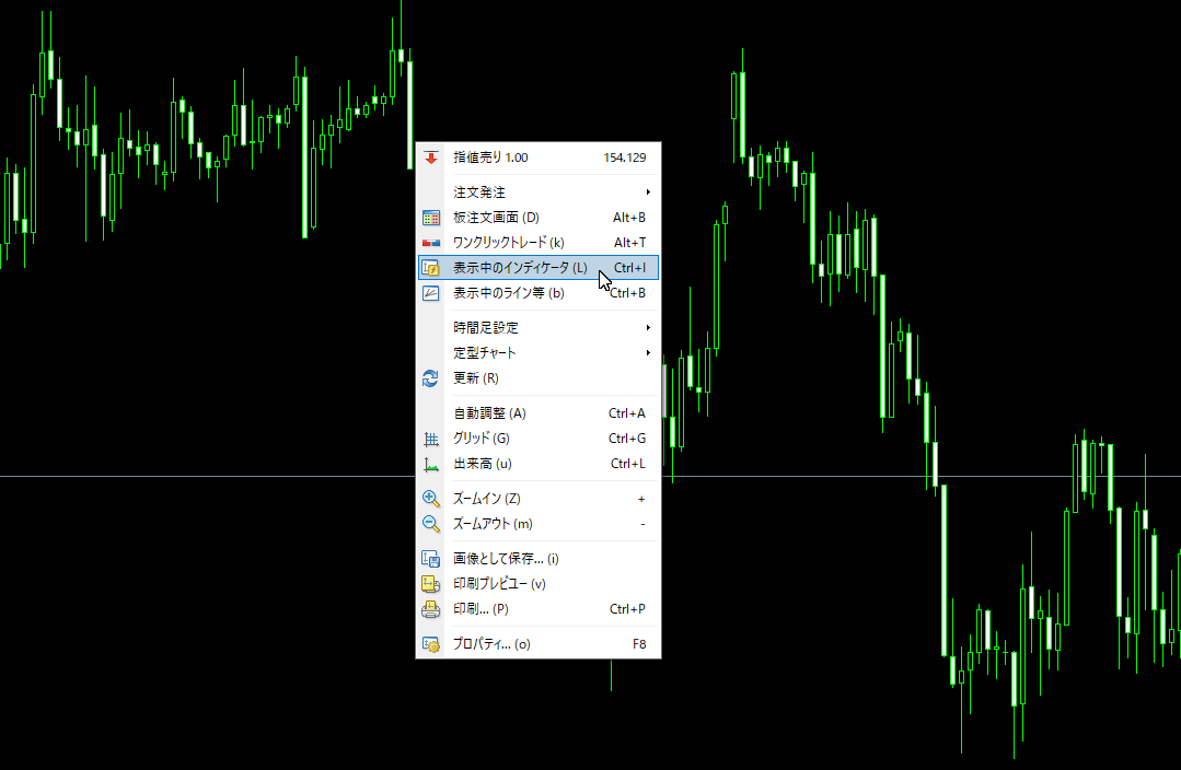チャートにインジケーターを追加するか、すでに表示中のインジケーターを編集します。 -