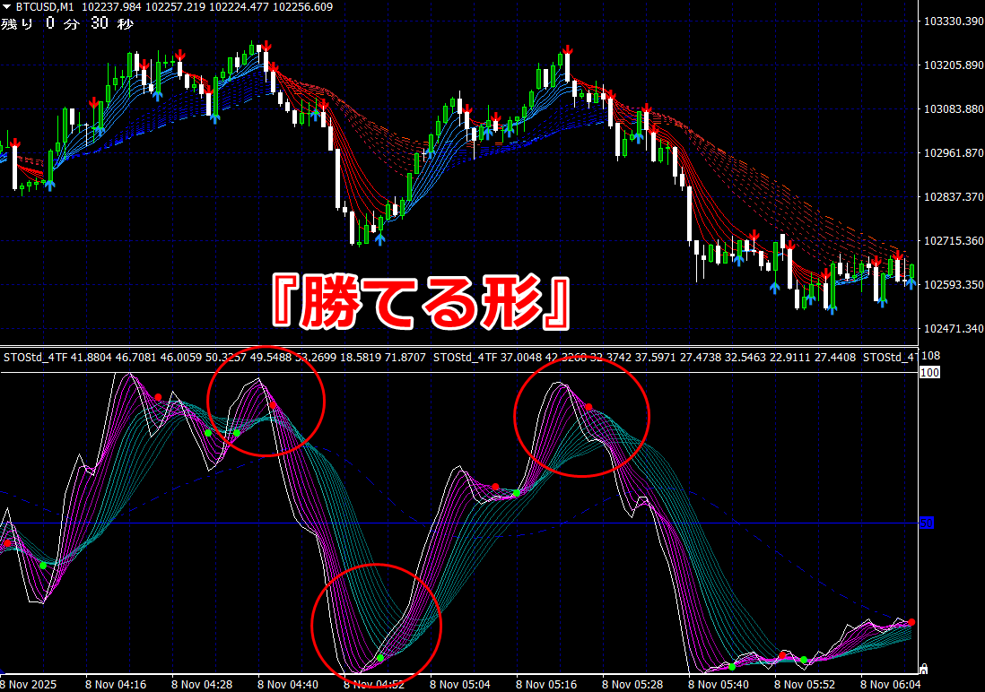 エントリーポイントを見た目で ”学習” できるインジケーター