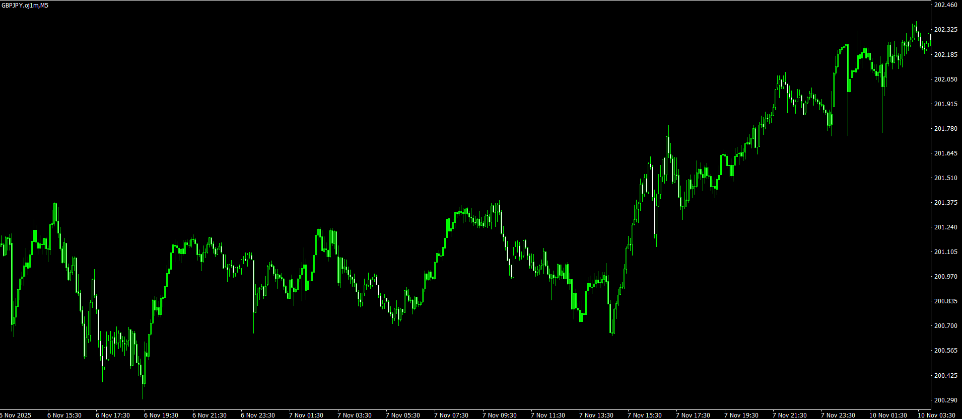 以下のチャートは、ポンド円 11/10 3:00付近の5分足チャートです。