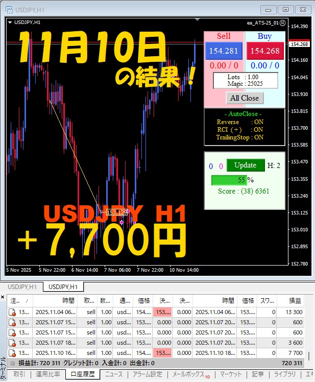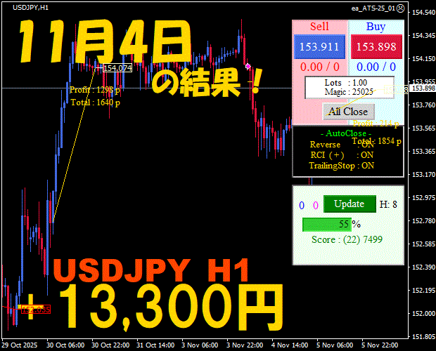 【前日の結果】USDJPY H1 / M5 『ATS-25』11月10日