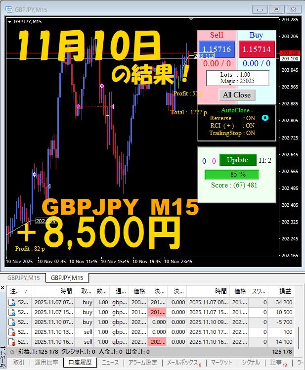 【GBPJPY M15】前日の結果『ATS-25』 11月10日