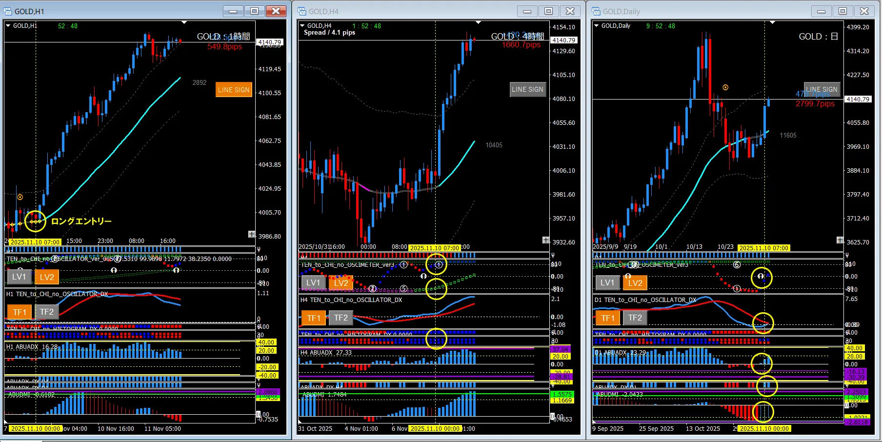 【2025年11月11日】天と地のインジケーターのデイスイング手法検証(ゴールド)