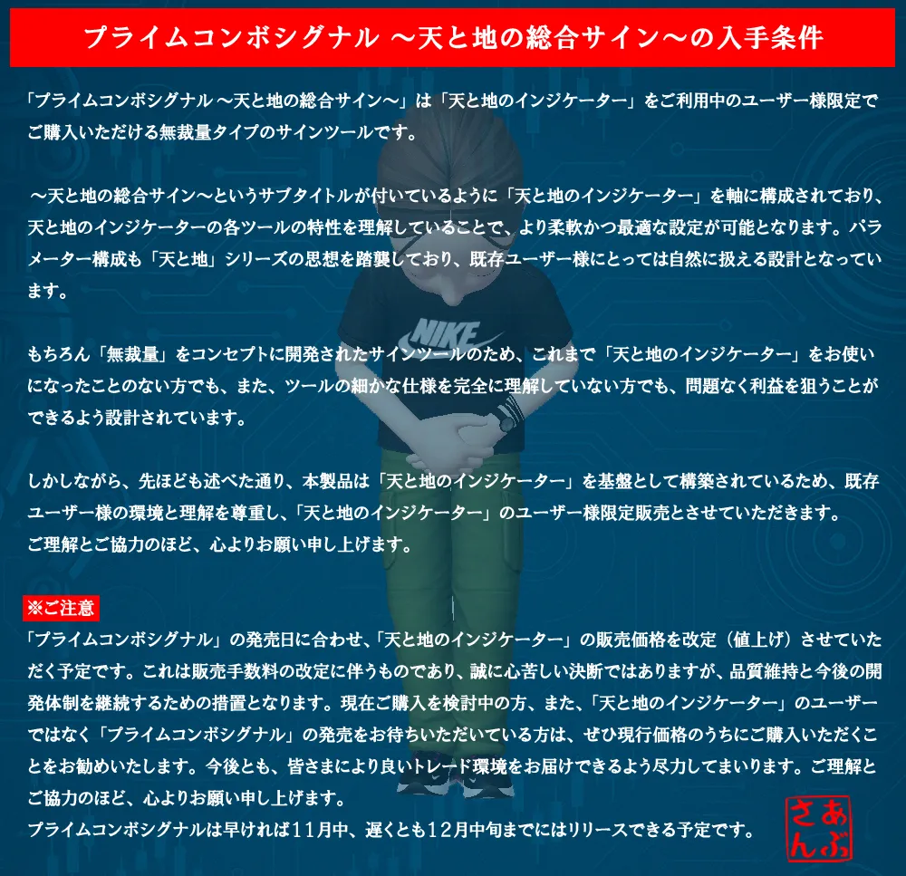 以下の画像は既にSNSでポストしましたが、新作「プライムコンボシグナル~天と地の総合サイン~」の威力を軽くご紹介。完全無裁量です。