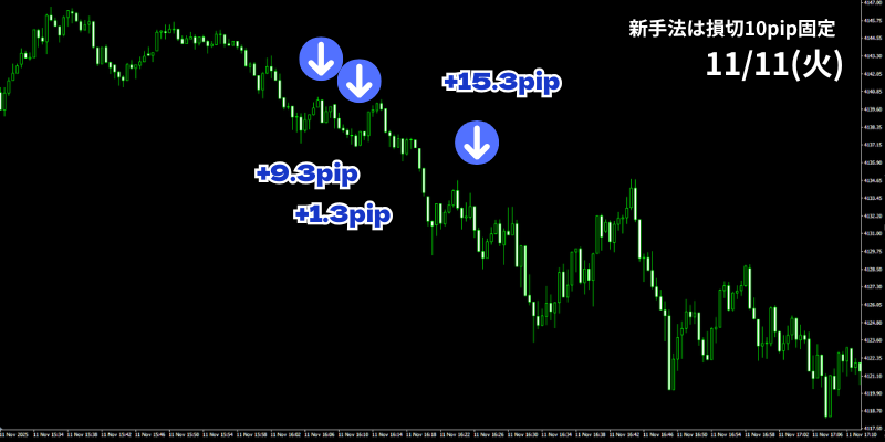 【11月11日】30秒足GOLD無裁量スキャルピング+【第2弾30秒足GOLDオートマチックFX】のトレード結果!