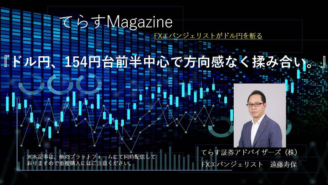 ドル円、154円台前半中心で方向感なく揉み合い。