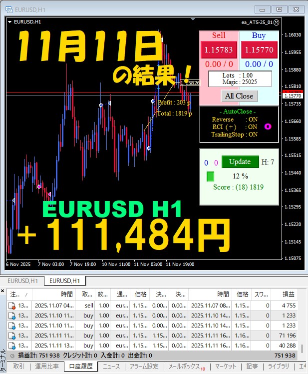 【前日の結果】EURUSD H1 / M5 『ATS-25』11月11日