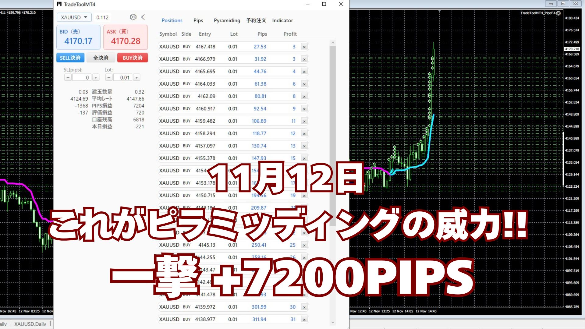 【最新実績】ピラミッディング機能で驚異の+7,200 pips達成!