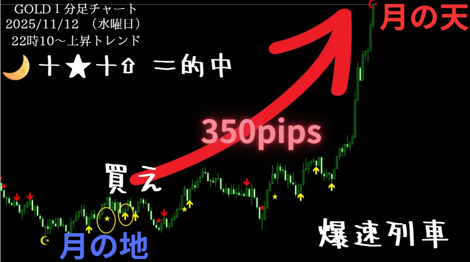 2025/11/12 先日の爆速列車のエントリーポイントGOLD! ➕350pips“
