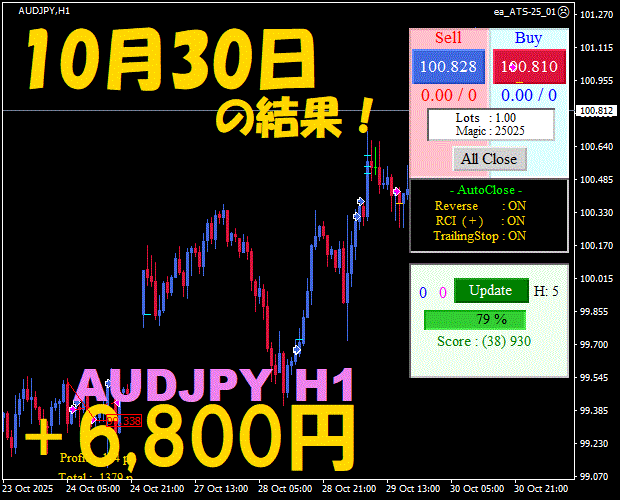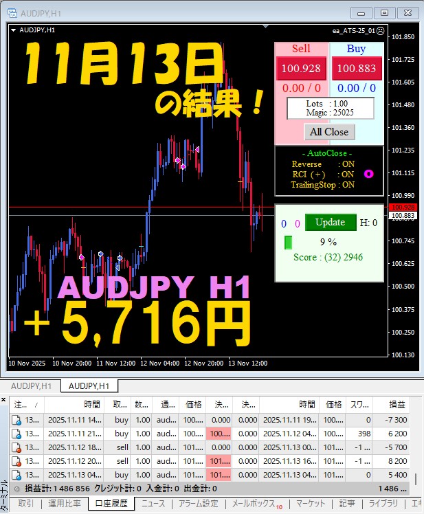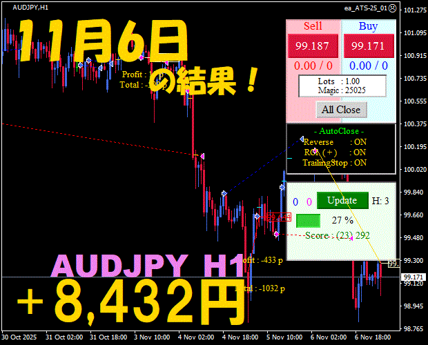 【前日の結果】AUDJPY H1 / M5 『ATS-25』11月13日