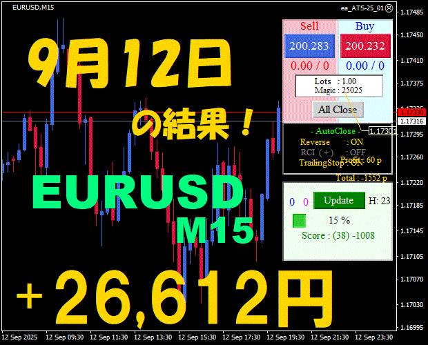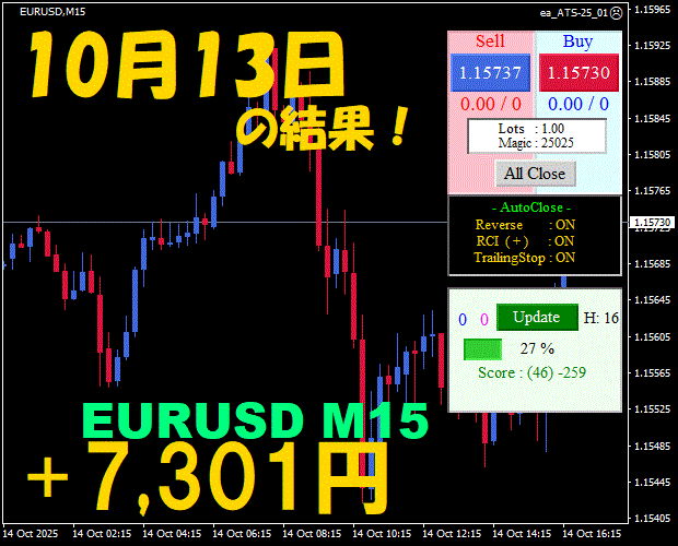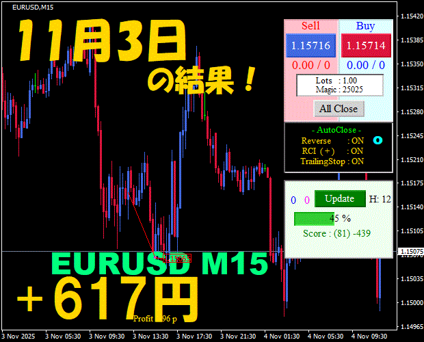 【EURUSD M15】前日の結果『ATS-25』 11月13日