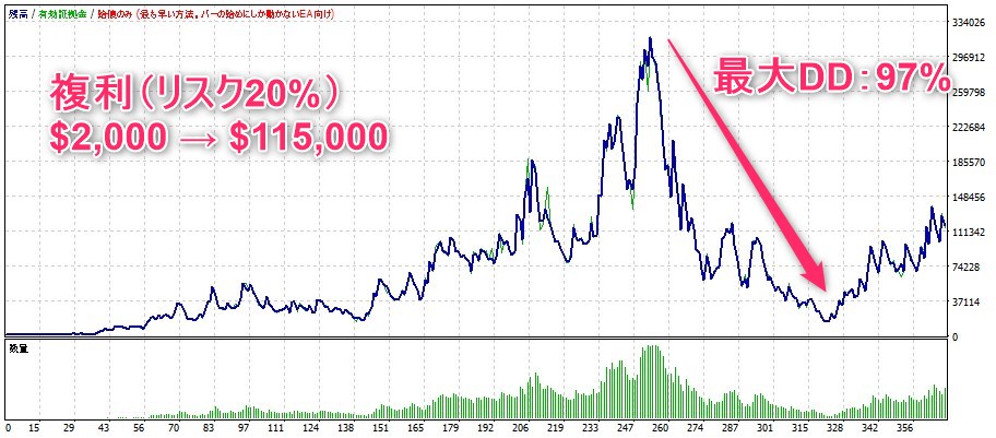 最大DD(ドローダウン)が97%・・・
