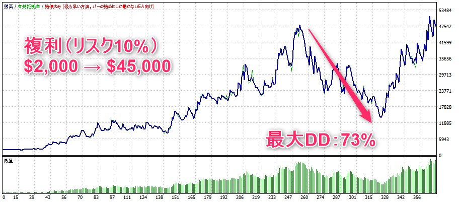 残高が増えるとロット数も連動して大きくなります。
