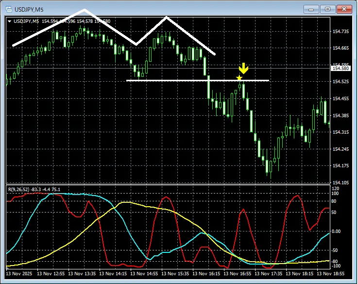 【RCIを極めて勝つ!!】ダブルトップとmBDSRのサイン ドル円 5分足