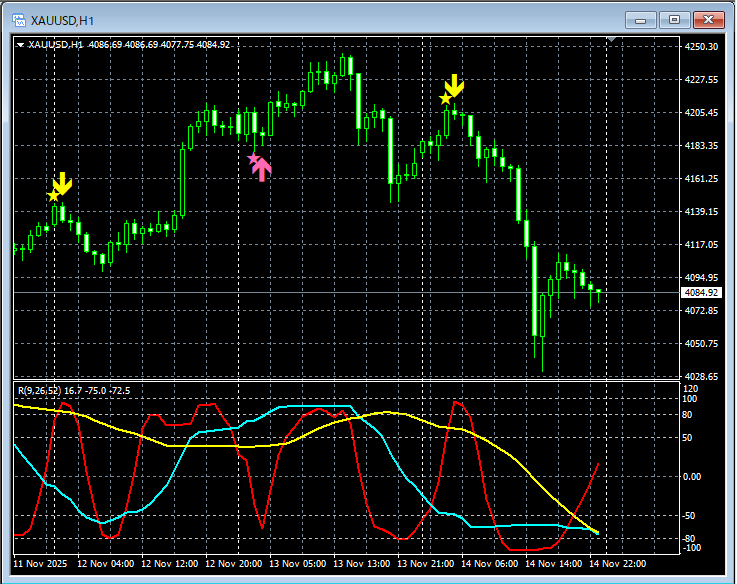 【RCIを極めて勝つ!!】mBDSRのサイン ゴールド XAUUSD 1時間足