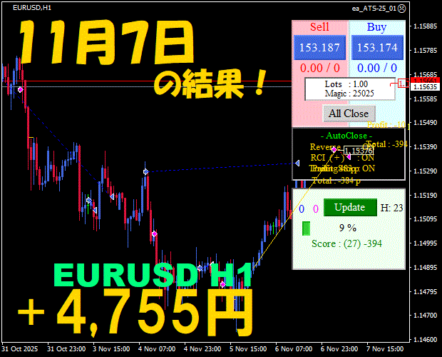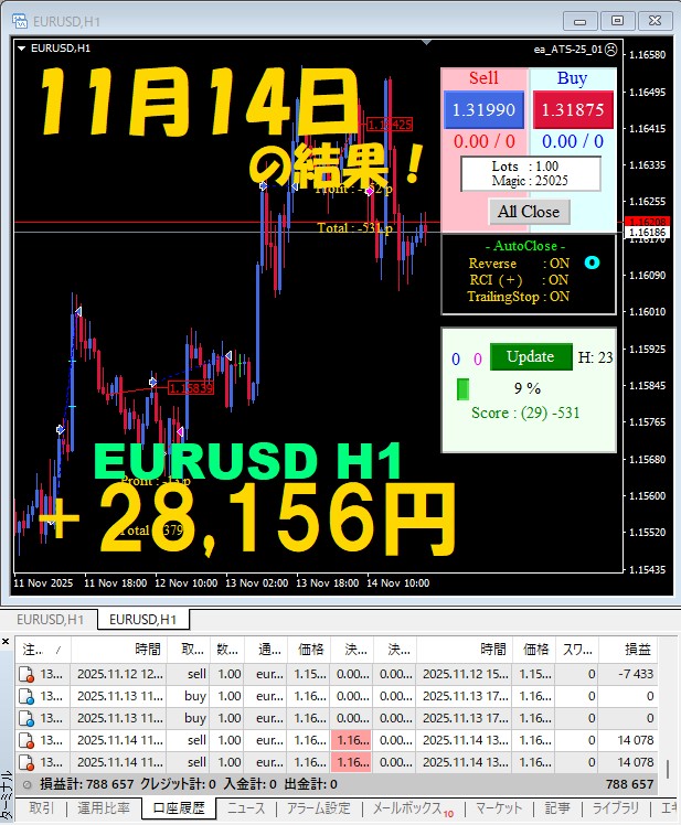 【前日の結果】EURUSD H1 / M5 『ATS-25』11月14日