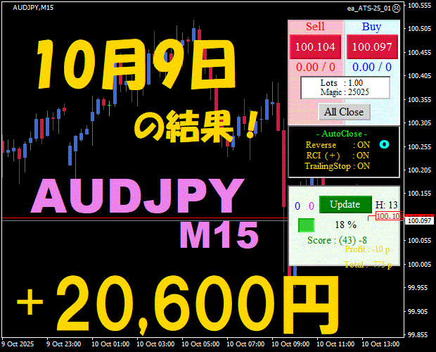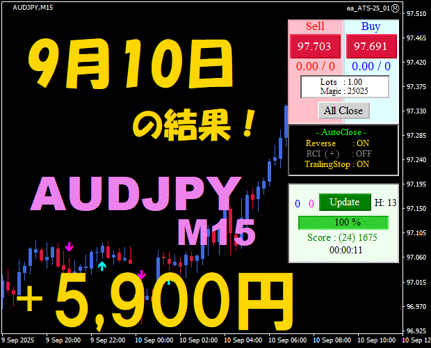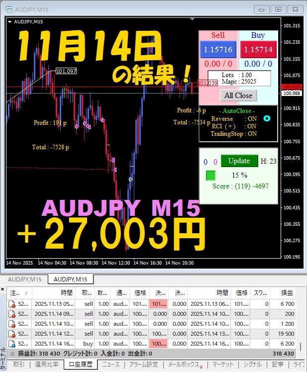 【AUDJPY M15】前日の結果『ATS-25』 11月14日
