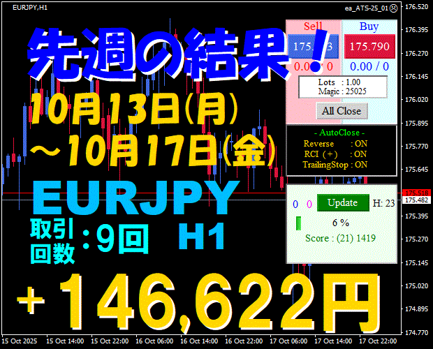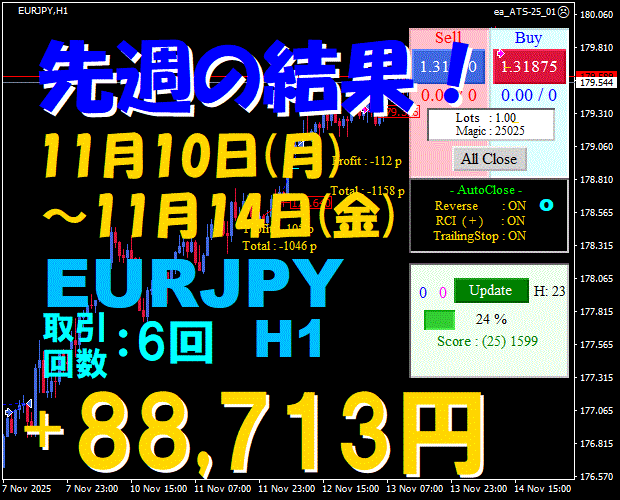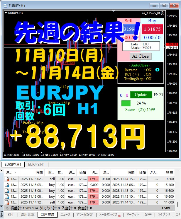 【先週の結果】EURJPY H1 『ATS-25』11月10日(月)~11月14日(金)