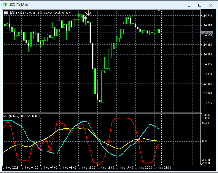 ドル円 USDJPY 20分足 MT5のチャートから