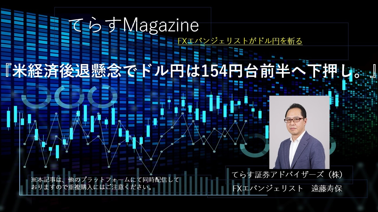 東京時間、ドル円は、仲値でのドル買い観測から154.74円まで上昇となるが、その後は日経平均の下落などを受け154.31円まで下押し。その後は154円台半ばで小動き。欧州時間、ドル円は、対欧州通貨などでドル高が進むと、一時154.76円まで上昇となるが、米10年債利回りの低下をきっかけに円買い・ドル売りが先行。日米株価指数先物や欧州株相場の下落を背景にリスク回避の円買い・ドル売りが入ると、153.61円まで下落。売り一巡後、ナイト・セッションの日経平均先物やナスダック総合がプラス圏を回復すると、ドル円は買戻しが先行。NY時間、ドル円は日米株価が底堅く推移すると、ドル円は154.74円まで上昇。その後ドル円は154円台半ば中心に小動きで推移。
