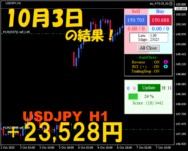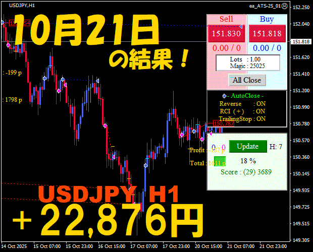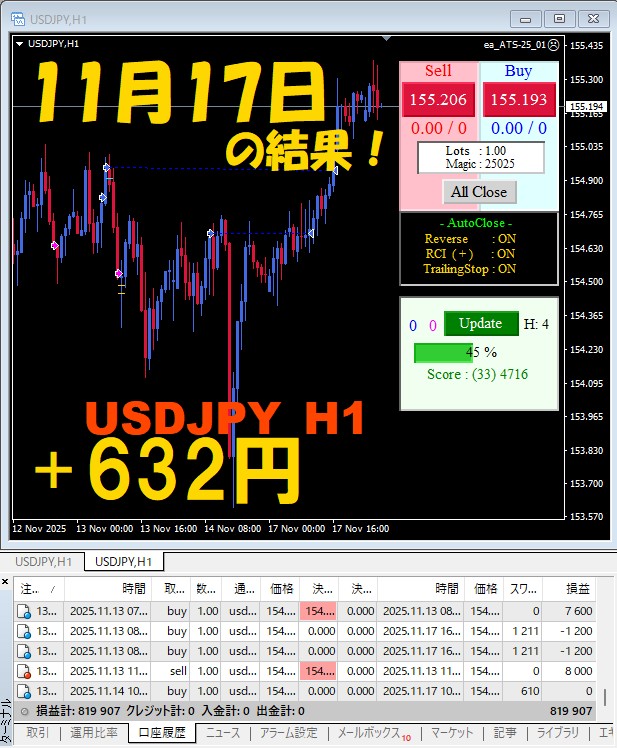 【前日の結果】USDJPY H1 / M5 『ATS-25』11月17日
