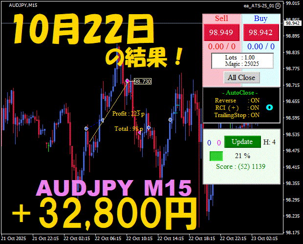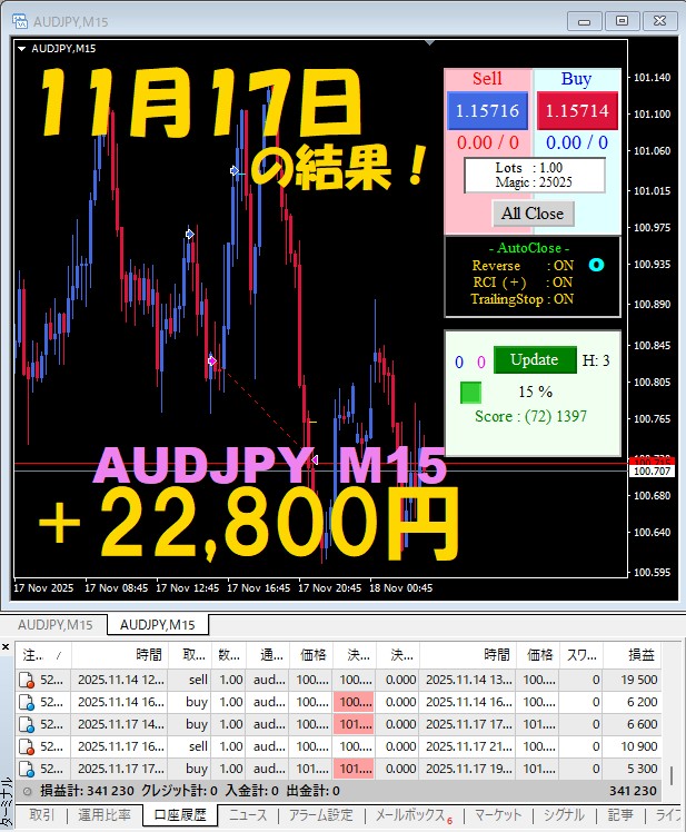 【AUDJPY M15】前日の結果『ATS-25』 11月17日