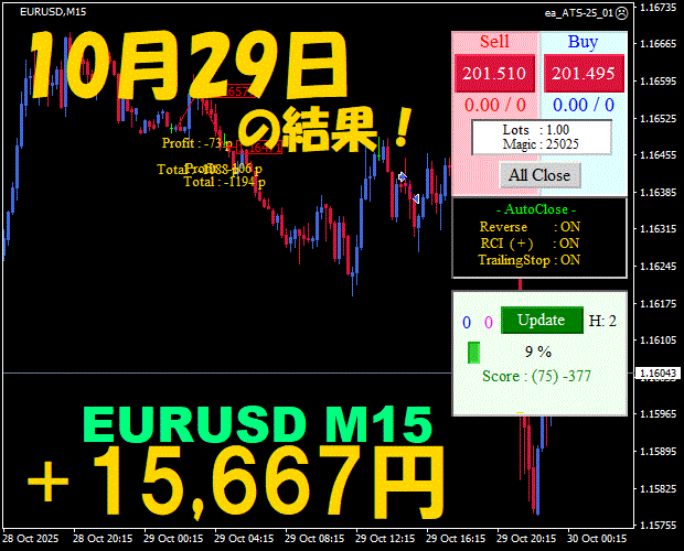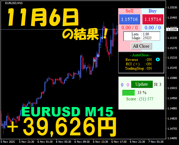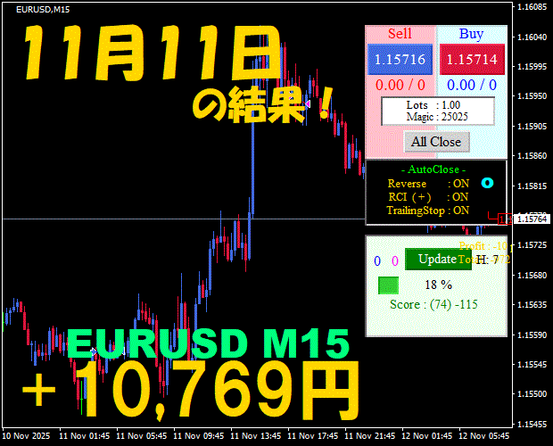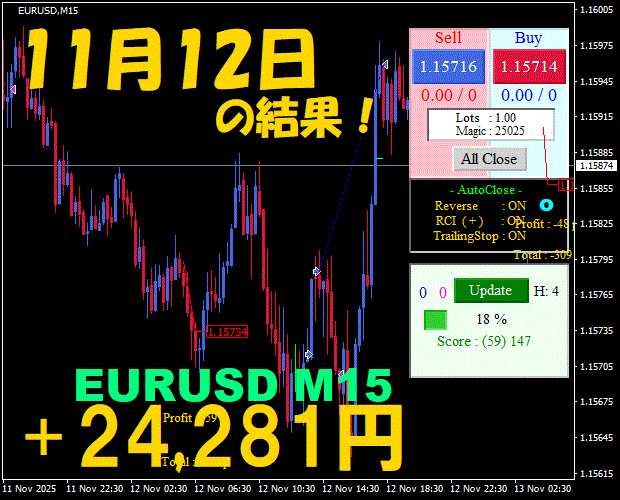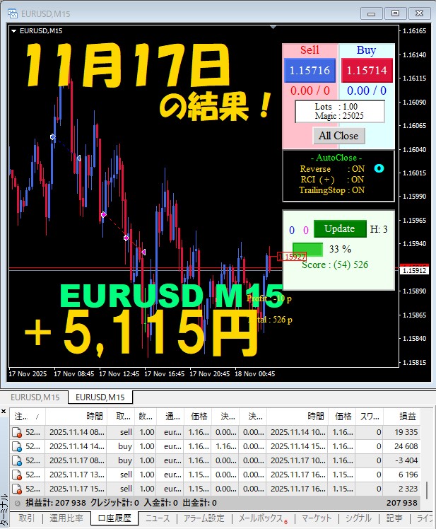【EURUSD M15】前日の結果『ATS-25』 11月17日