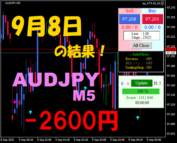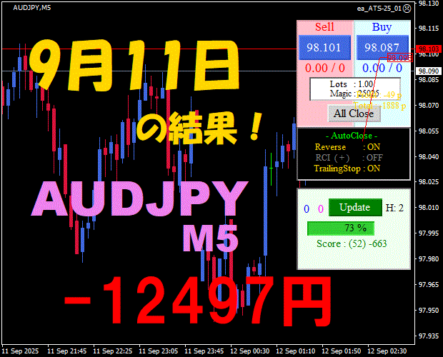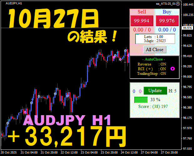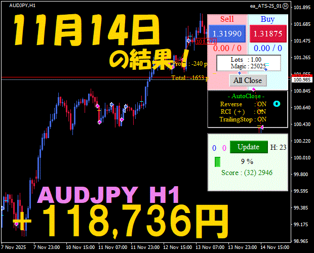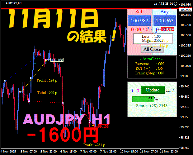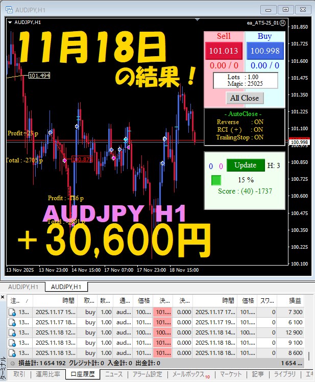 【前日の結果】AUDJPY H1 / M5 『ATS-25』11月18日