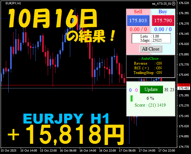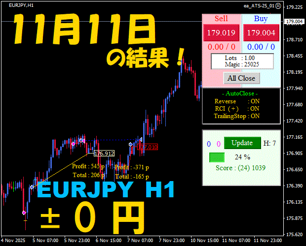 【前日の結果】EURJPY H1 / M5 『ATS-25』11月18日