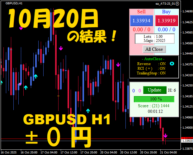 【前日の結果】GBPJPY H1 / M5 『ATS-25』11月18日
