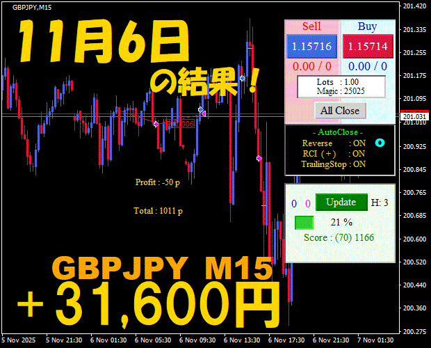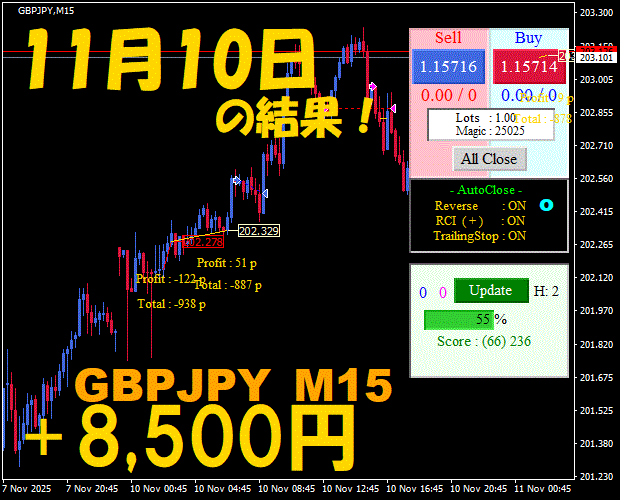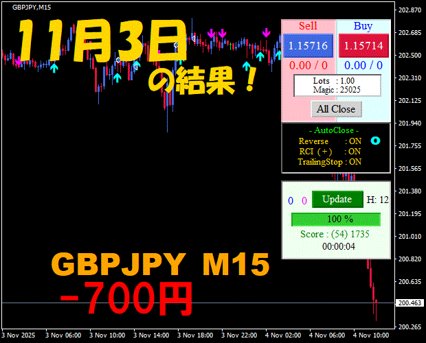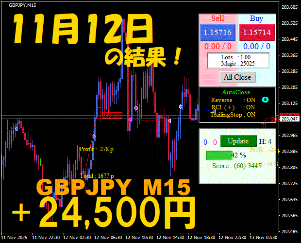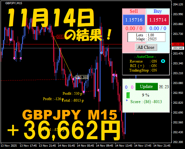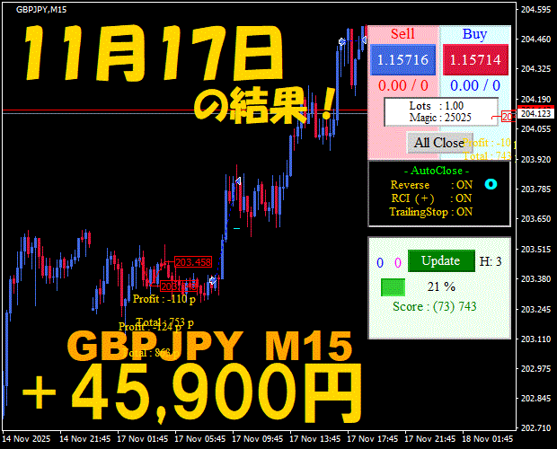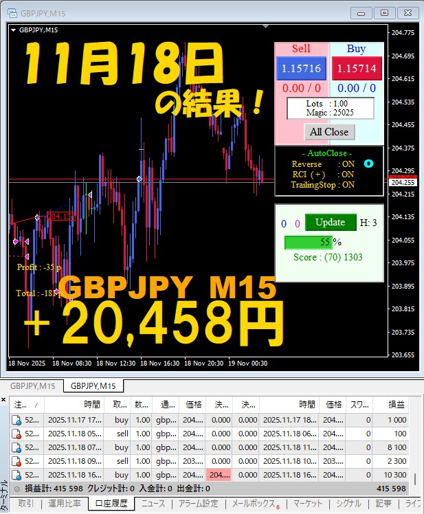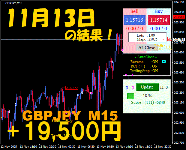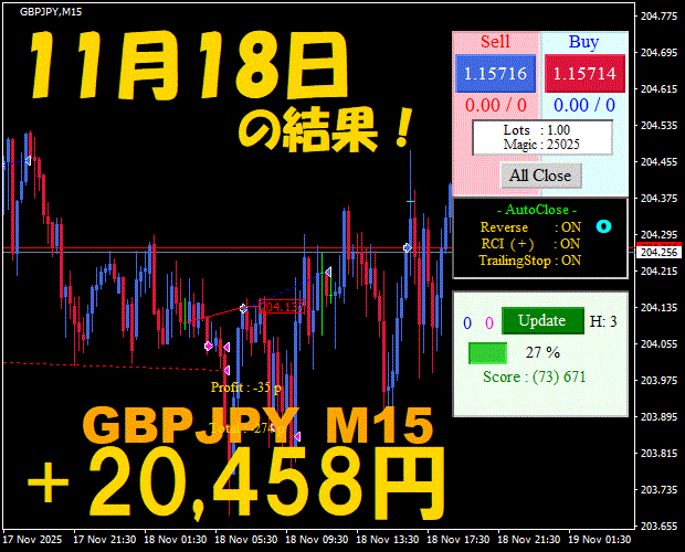 【GBPJPY M15】前日の結果『ATS-25』 11月18日