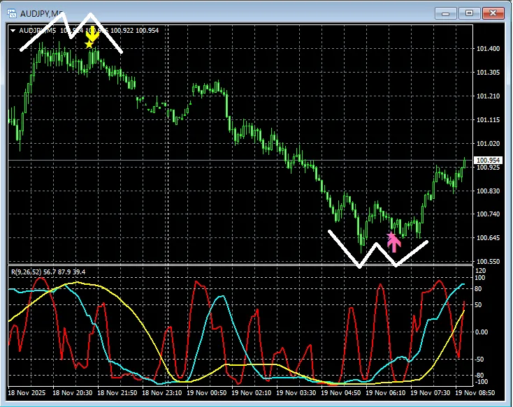 【RCIを極めてトレンド転換をとらえる!!】本日の豪ドル円 ダブルトップとダブルボトム
