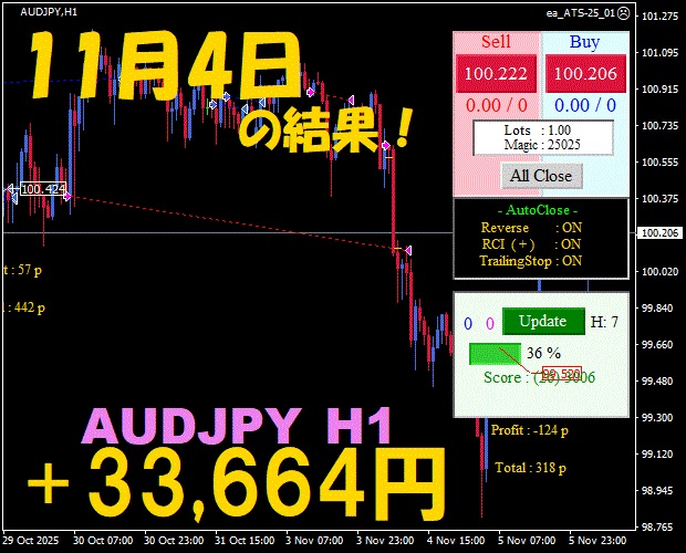【前日の結果】AUDJPY H1 / M5 『ATS-25』11月19日