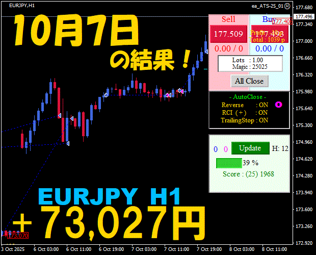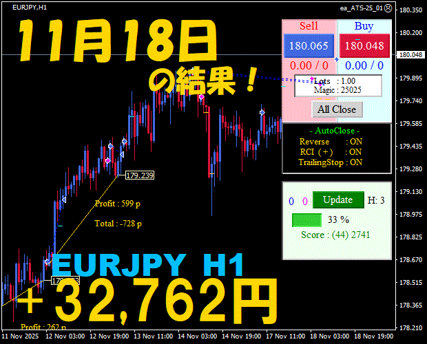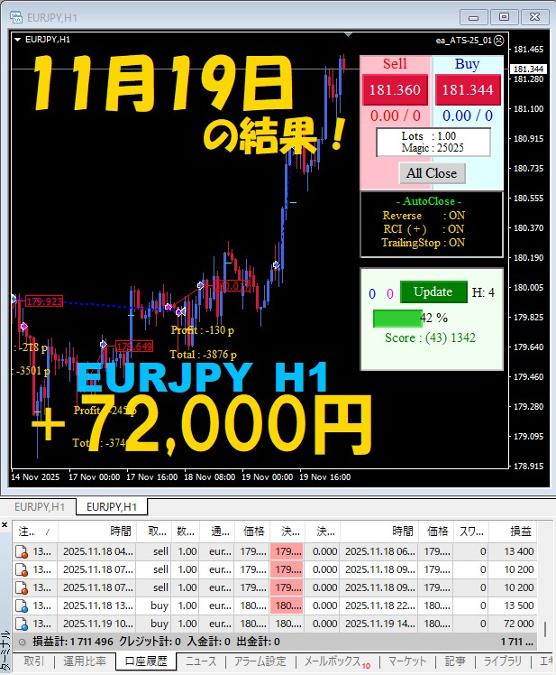 【前日の結果】EURJPY H1 / M5 『ATS-25』11月19日