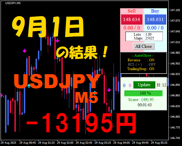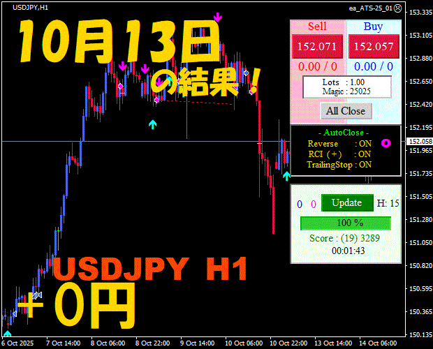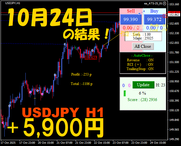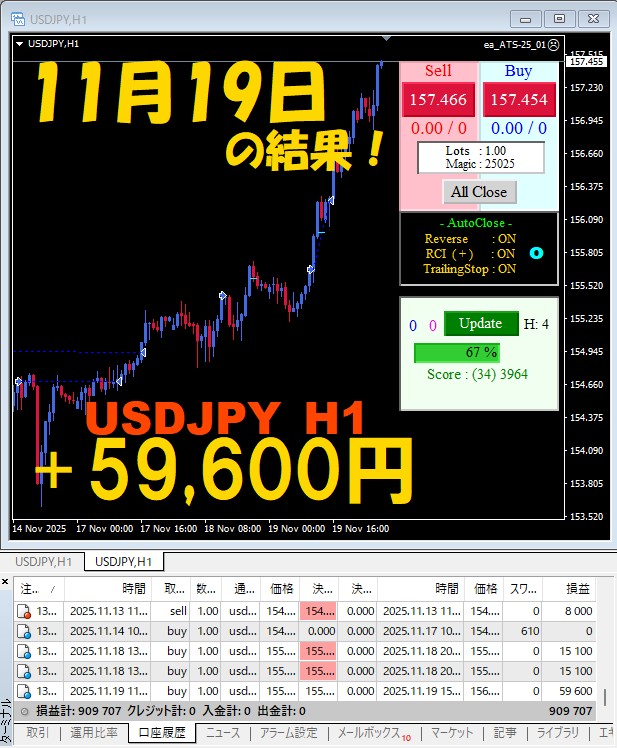 【前日の結果】USDJPY H1 / M5 『ATS-25』11月19日