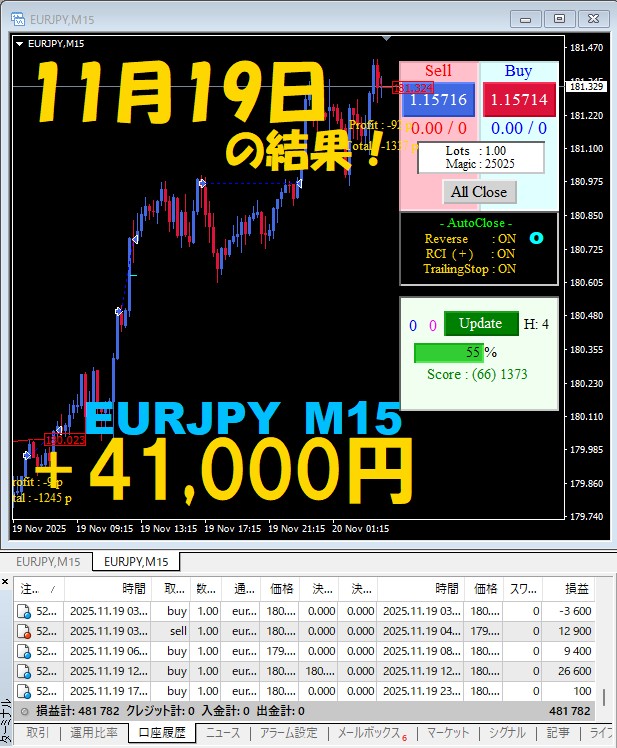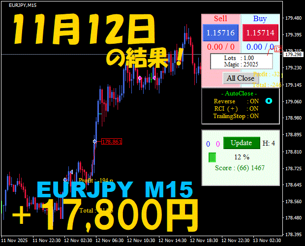 【EURJPY M15】前日の結果『ATS-25』 11月19日