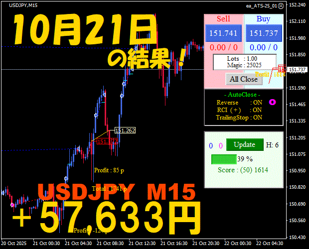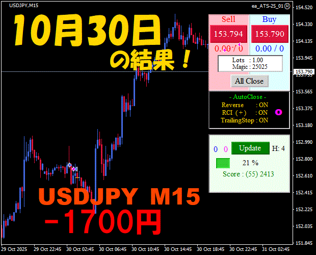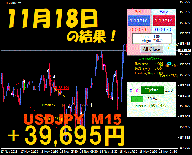 【USDJPY M15】前日の結果『ATS-25』 11月19日