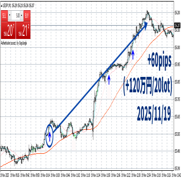昨日みたいに60pips伸びる波は毎回じゃないけど、サイン精度はやっぱり強いなと再確認しました。
