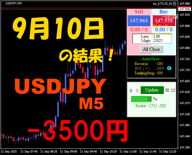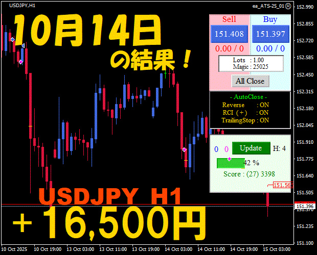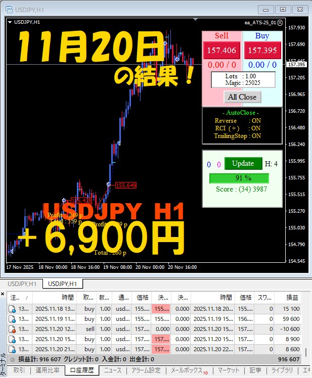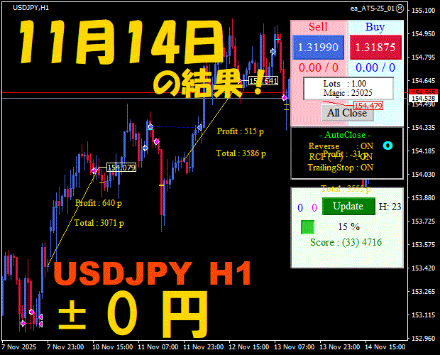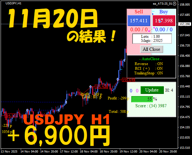 【前日の結果】USDJPY H1 / M5 『ATS-25』11月20日
