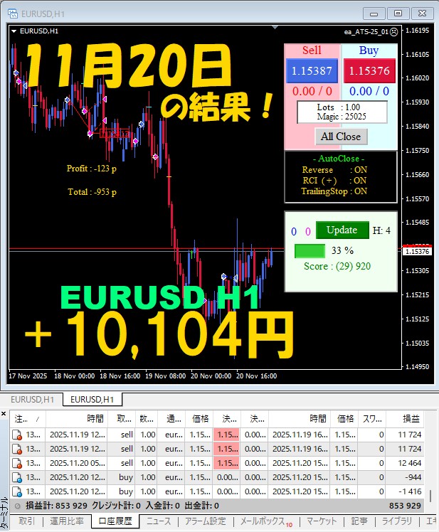 【前日の結果】EURUSD H1 / M5 『ATS-25』11月20日